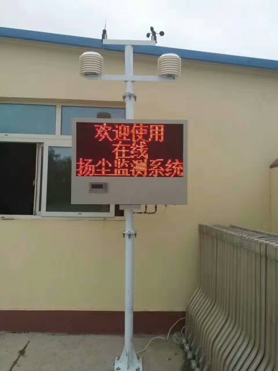 本系統(tǒng)由數(shù)據(jù)采集器、激光散射粉塵傳感器、噪聲傳感器、溫濕度傳感器、風(fēng)速傳感器、風(fēng)向傳感器、戶外防水LED顯示屏、高碳防水噴塑箱體、及組合式噴塑立桿組成。監(jiān)測系統(tǒng)集成了大氣PM2.5、PM10監(jiān)測、環(huán)境溫濕度及風(fēng)速風(fēng)向風(fēng)力監(jiān)測、噪聲監(jiān)測等。