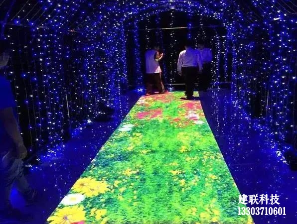 21世紀是智能的時代,自動扶梯、無人超市、智能指紋解鎖、無人駕駛,以及現(xiàn)在人手一部的智能手機,無一不在像我們召喚,智能化將會越來越普及以便利我們?nèi)粘I?。從發(fā)展的角度而言,LED顯示屏行業(yè)的智能化也是大勢所趨。在互動領(lǐng)域,表現(xiàn)最為突出的要數(shù)LED地磚屏。什么是LED地磚屏?顧名思義,LED地磚屏是個性化的專門為地面設(shè)計的LED顯示屏。相較傳統(tǒng)的LED顯示屏,LED地磚屏在承重、防護性能、及散熱性能等方面做過特殊設(shè)計,使其能適應高強度踩踏,長時間正常運行?;拥卮u屏是在LED地磚屏基礎(chǔ)之上,增加了感應互動功能。比如借助紅外感應,可以跟蹤人的運動軌跡,能夠跟隨人體的活動呈現(xiàn)即時的畫面效果,從而可以實現(xiàn)諸如演員與觀眾走過,腳下出現(xiàn)水波紋、花朵開放等效果。