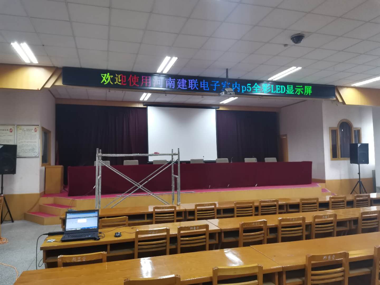 近日,鄭州國(guó)土局會(huì)議室由河南建聯(lián)電子承制一塊門頭全彩顯示屏,這塊會(huì)議室會(huì)標(biāo)屏采用室內(nèi)P5全彩,模組尺寸320*160 ,采用全彩作為會(huì)議室會(huì)標(biāo)屏,是根據(jù)單位領(lǐng)導(dǎo)意愿定向設(shè)計(jì)的,全彩屏作為會(huì)標(biāo)屏,還不多見(jiàn),以后隨著價(jià)格的不斷下降,必將取代但雙色會(huì)標(biāo)屏。
