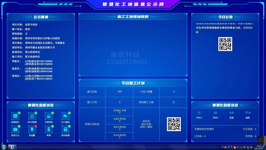 目前,該智慧工地設備與全部安裝完畢,并聯(lián)網鄭州控塵辦智慧工地平臺。