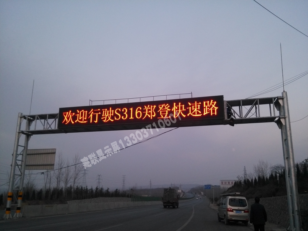 安裝在高速公路車道的上方,由控制中心控制,以便在交通狀況、天氣狀況等出現(xiàn)異常時(shí)及時(shí)提醒駕駛員,配合交通監(jiān)控系統(tǒng)對(duì)交通流量進(jìn)行誘導(dǎo)和控制,并可顯示宣傳標(biāo)語(yǔ)、口號(hào)、廣告等。